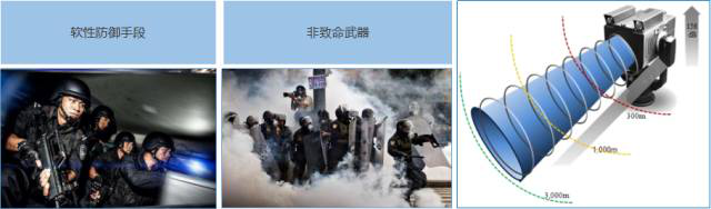 遠距離喊話與警示,機場、大型艦船驅鳥,重要場所、關鍵區域防護,反恐維穩,監獄安防,海上執法,邊境防衛,主權昭示……