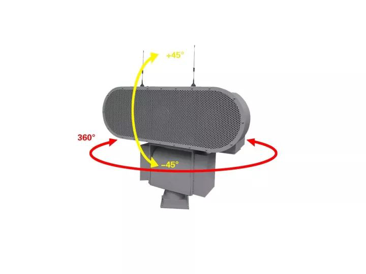 人性化工業設計,360 °自動旋轉、俯仰+/-45°,確保系統無死角覆蓋,靈活應對混亂場面,精準傳達,整治暴亂。